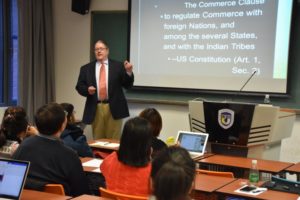 罗伯特·沃岳教授讲座的题目是“特朗普时代美国印第安人的生活现状”(“Native Americans in the Trump Era”)。沃岳教授首先用一张地图清晰地展示了目前美国印第安人的人口分布状况,以及印第安人作为一个群体在教育、就业、生活等方面面临的严峻挑战。然后,他重点介绍了他所在的奥萨治族人(the Osage Nation)目前的生活状况、他们奋斗的历史、取得的成就。沃岳教授通过一个个感人的故事,讲述了他的族人、他的家庭的奋斗史,无不令听者动容。
