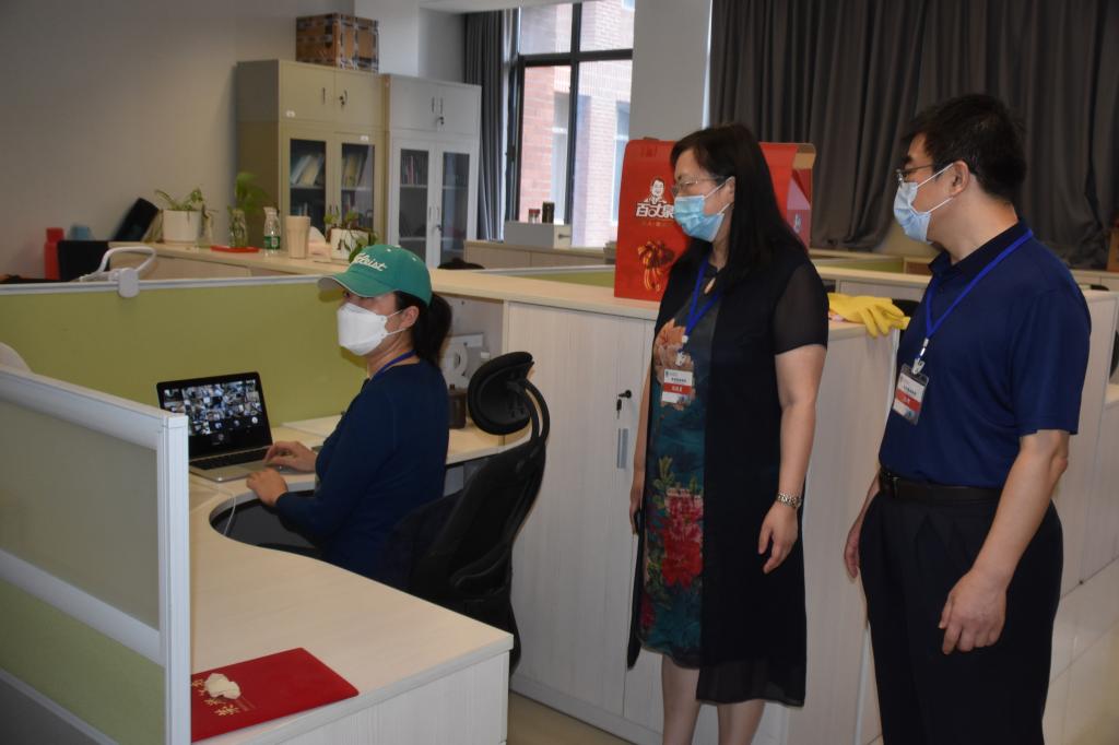 6月22-23日,beat365官方网站举行全校期末大学英语在线闭卷考试。教务处处长李莉文莅临beat365巡考。beat365官方网站院长蔡鸿和教学副院长蒋岳春陪同检查各个在线考场准备和考试情况。
