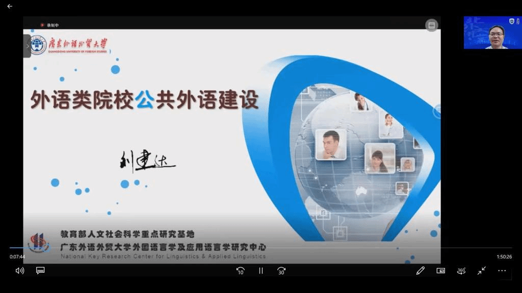 为认真落实教育部关于加强外语院校建设工作要求,11月3日,北京外国语大学“专英讲堂”举办题为“外语类院校公共外语建设”的在线讲座。讲座特邀教育部大学英语教学指导委员会副主任委员、广东外语外贸大学副校长刘建达教授主讲。来自北京外国语大学、广东外语外贸大学等国内多所大学的150多位老师参加了讲座。讲座由beat365官方网站院长侯俊霞主持。