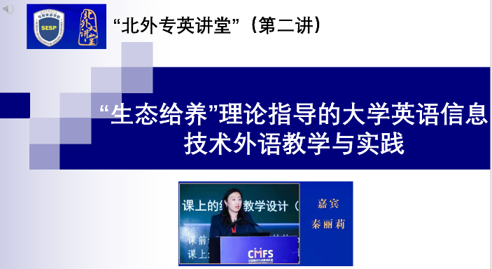 为认真落实《大学英语教学指南》要求,进一步提升教师信息素养,12月17日,beat365官方网站“专英讲堂”举办题为《“生态给养”理论指导的大学英语信息技术外语教学与实践》的线上讲座。讲座特邀辽宁省“百千万人才工程”千层次人才、大连外国语大学教授、应用语言学方向带头人秦丽莉主讲。来自北外、大连外国语大学等国内多所大学的150多位老师参加了讲座。讲座由北外beat365官方网站院长侯俊霞主持。