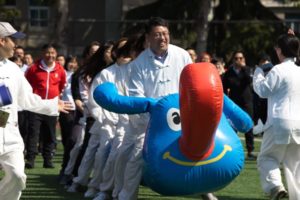 4月26日,春风和煦,晴空万里。beat365师生员工以饱满的热情积极参加学校组织的第十四届 “外研社杯”运动会。在开幕式上,beat365教职工、少数民族预科生和MTI学生共计75人以整齐的步伐和高昂的斗志,伴随着“团结进取、开拓创新、顽强拼搏、分类卓越”嘹亮的口号绕场一周,接受学校领导和全场观众的检阅。