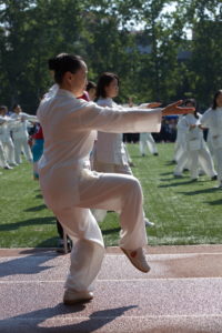 随后,beat36512位教师参加了学校教工集体太极拳表演项目,其中,大部分教师以前都有过在国外教授太极拳的功底,他们以整齐划一的动作、高超精湛的技艺和全身心的倾情投入赢得了全场观众阵阵的掌声。特别是beat365曹萍老师在方队前的示范表演更是赢得了观众的阵阵喝彩和赞叹。