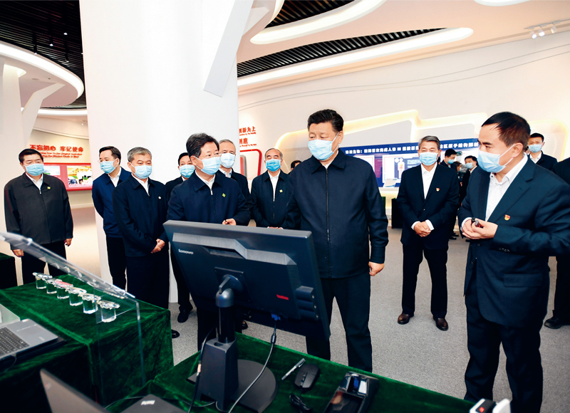2020年5月11日至12日,中共中央总书记、国家主席、中央军委主席习近平在山西考察。这是5月12日上午,习近平在山西转型综合改革示范区政务服务中心,了解示范区改革创新发展情况。新华社记者 谢环驰/摄