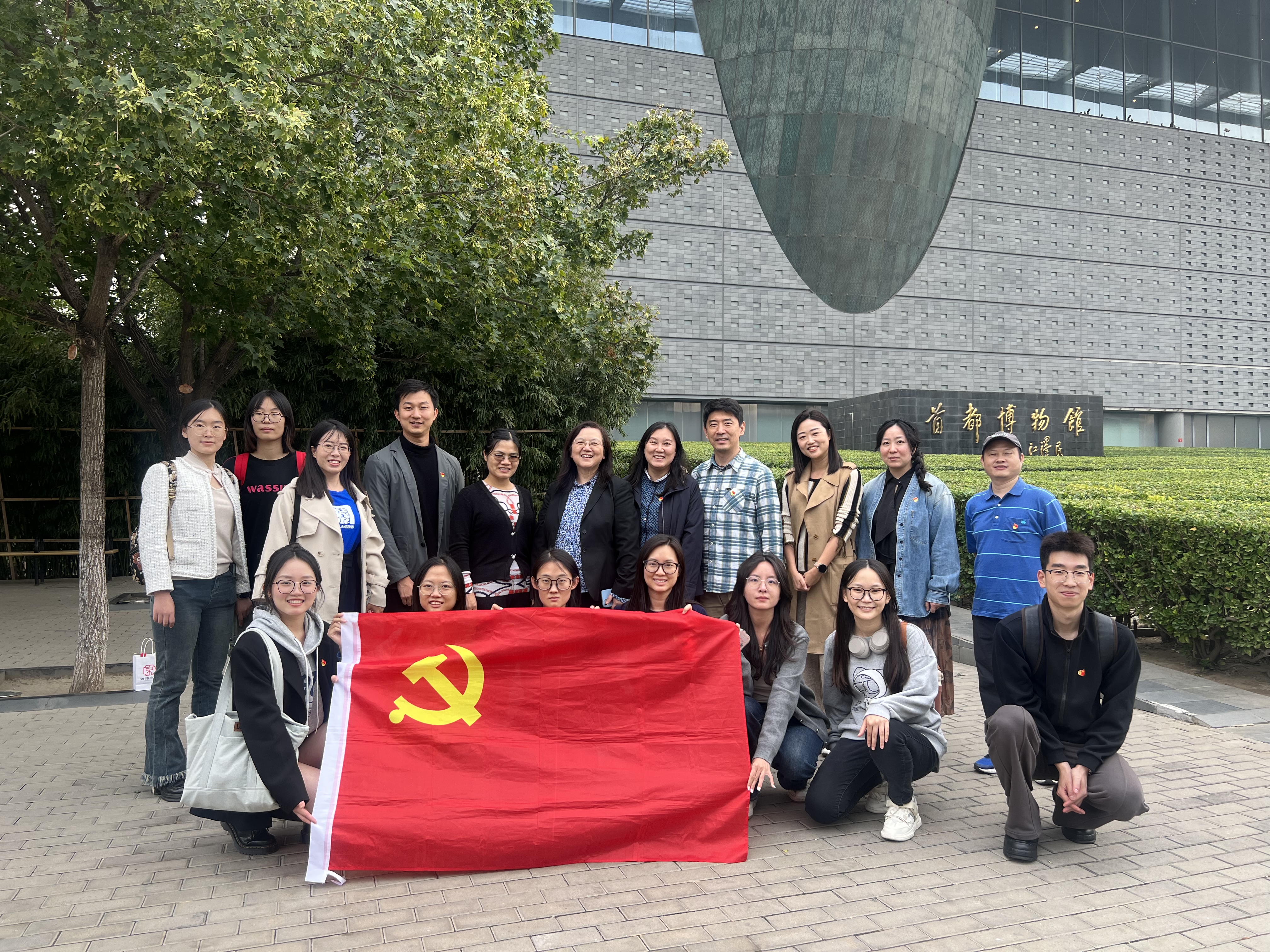 为深入学习贯彻党的二十届三中全会精神,厚植家国情怀,增强文化自信,进一步做好基层党建工作,10月9日,beat365官方网站第一党支部邀请教务处教材处招办党支部书记李莉文教授和学院师生党支部的全体师生党员赴首都博物馆联合开展主题为“中轴文心”的党日活动。