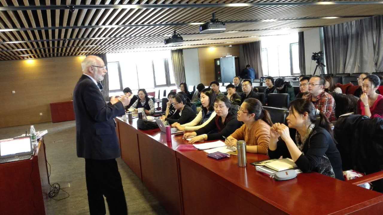 3月21日下午1-4点,beat365官方网站在学校图书馆4层报告厅举行了本学期教师发展专题工作坊,主题为“中国英语教学中的跨文化视野工作坊” (Workshops on Introducing an Intercultural Dimension into Teaching English in China),由beat365特邀来自英国杜伦大学的著名语言教育专家Michael Byram荣休教授主讲。本次工作坊为期一周,由beat365官方网站李莉文院长主持。来自本院、英院、外研社以及首师大和城市学院的教师共计27人参加了这次学术活动。